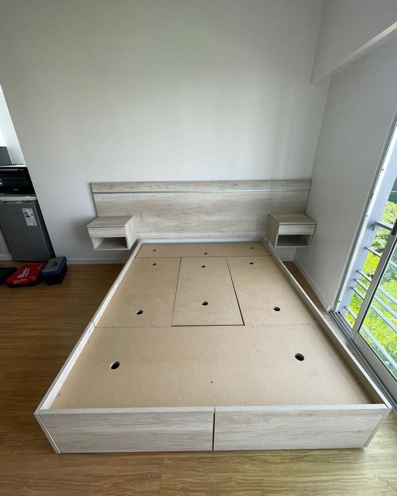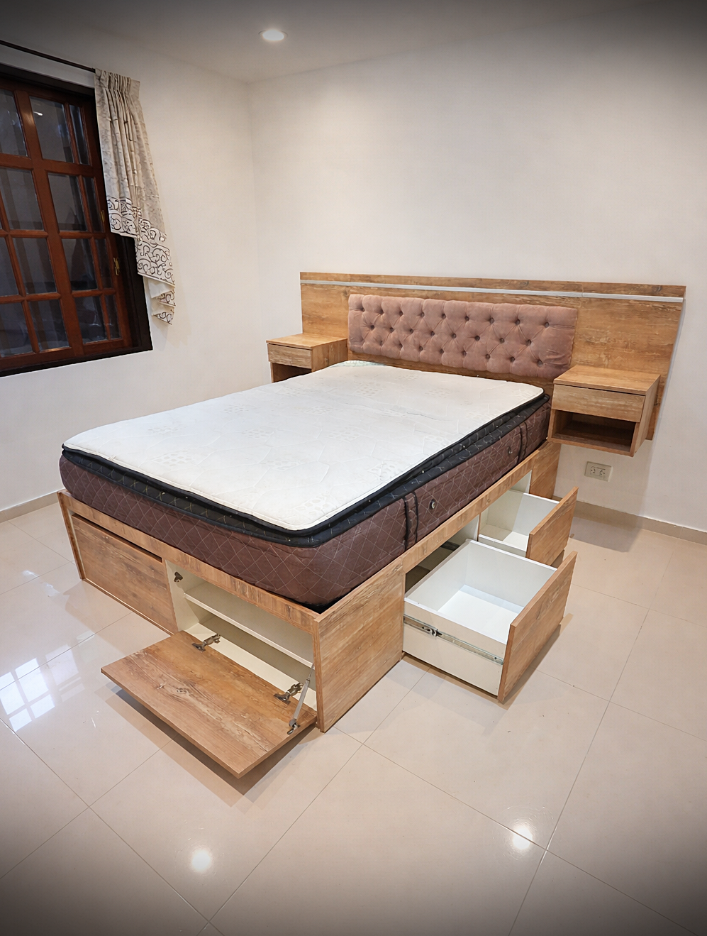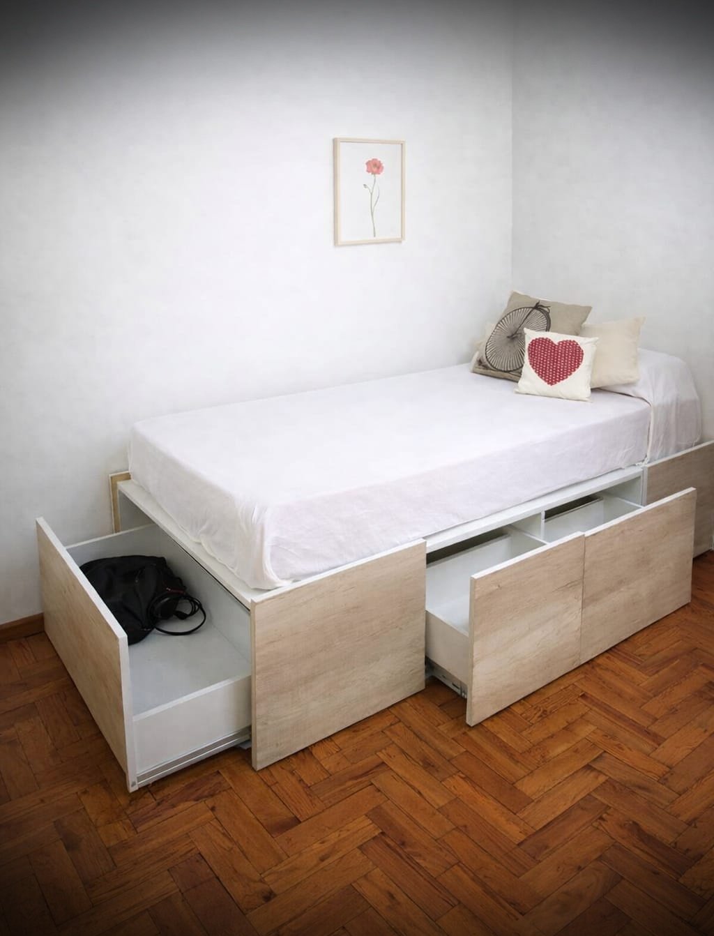 Si buscás menor ruido visual y que tu dormitorio respire, hace como ellos que ya tienen su cama con cajones en casa!