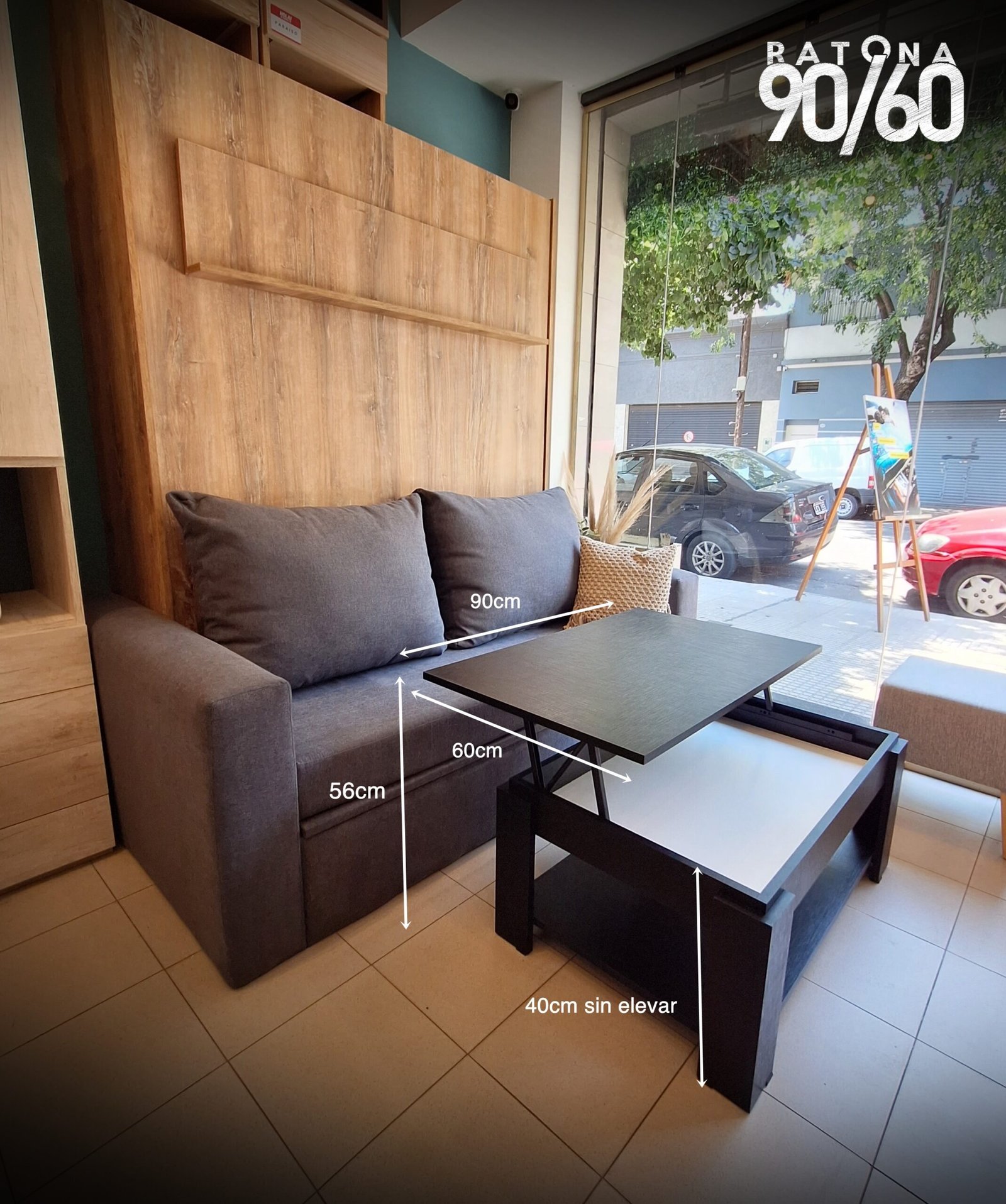 90 x 60 x 41cm alto sin elevar (57cm elevada)*